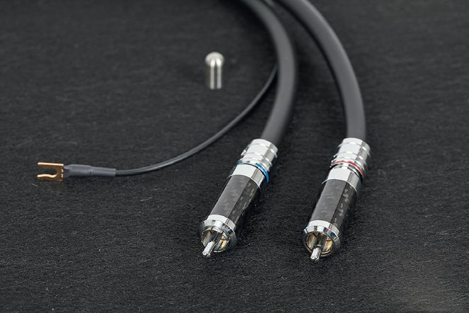 Nie ma natomiast złącz sygnałowych; ten fragment zaprojektowano zupełnie inaczej: kabel biegnący przez ramię jest zakończony nietypową złączką, którą trzeba spiąć z odpowiednim zakończeniem zewnętrznego kabla sygnałowego, ale najwygodniej zrobić to podczas montażu ramienia, a nie później, gdy dostęp do tej złączki jest już utrudniony. W komplecie jest nietypowy kabel zewnętrzy (z drugiej strony zakończony już "normalnie" – parą RCA).