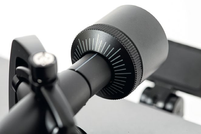 Efektywna długość ramienia wynosi 221,5 mm, rurka jest prosta, zakończona gniazdem, w które wkręcamy kątową główkę. System zawieszenia w tylnej kolumnie to typowy zestaw wspornika oraz klamry.