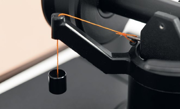 Ramię jest wkręcone w plintę, a wkładka w główkę – i wszystko skalibrowane. Do zainstalowania pozostaje jednak kilka elementów: talerz (wystarczy zdjąć dolną osłonkę, łożysko nie wymaga żadnych zabiegów), pasek napędowy, przeciwwaga oraz – to chyba wymaga najwięcej cierpliwości – ciężarek i żyłka systemu anti-skating.