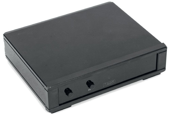 W pudełku z gramofonem znajdziemy dość typowy, ścienny zasilacz, ale to tylko jeden z elementów bardziej złożonego systemu. Kolejnym jest niewielka czarna puszeczka (w podobnych obudowach Rega umieszcza swoje przedwzmacniacze gramofonowe) będąca zewnętrznym sterownikiem umożliwiającym zmianę prędkości obrotowej i bardzo dokładną jej mikroregulację.