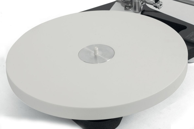 Talerz jest ceramiczny i już dość ciężki (ok. 2,5 kg), jak więc ma się on do koncepcji lekkiej konstrukcji, wyrażonej głównie w podstawie? Tutaj trzeba pójść na kompromis, aby zapewnić wysoką stabilność obrotów. Swoją drogą biała ceramika talerza wygląda intrygująco a zarazem doskonale kontrastuje z nowoczesną podstawą.