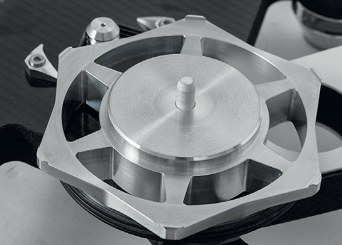 Samo łożysko, na którym opiera się talerz, wykonano z materiału o nazwie ZTA – aluminium pokrytego warstwą cyrkonu, zapewniającego trwałość, a tarcie redukuje film olejowy.