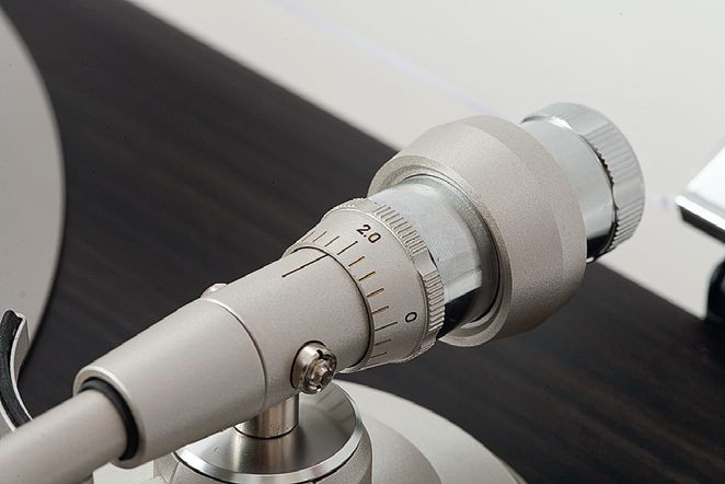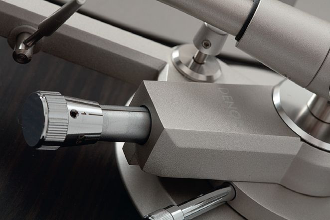 Główka nie ma mechanizmu do regulacji azymutu, ale inne ustawienia są w komplecie. Ciekawie prezentuje się dolna część kolumny z systemem regulacji wysokości, do którego łatwy dostęp daje pozioma śruba blokady (to znowu element zaczerpnięty z niektórych starych gramofonów Denona). Do regulacji anti-skatingu służy wygodne pokrętło, a do ustalenia siły nacisku igły – typowa przeciwwaga.