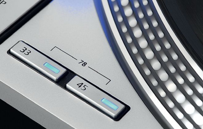 Drugie źródło światła zostało umieszczone w niewielkim, pionowym słupku ulokowanym już bliżej ramienia, rozjaśniając okolice igły (można je wyłączyć). Obroty uruchamiamy (i zatrzymujemy) dużym przyciskiem z lewej strony, dwa kolejne służą do wyboru standardu prędkości (33,3; 45 oraz 78 obr./min).