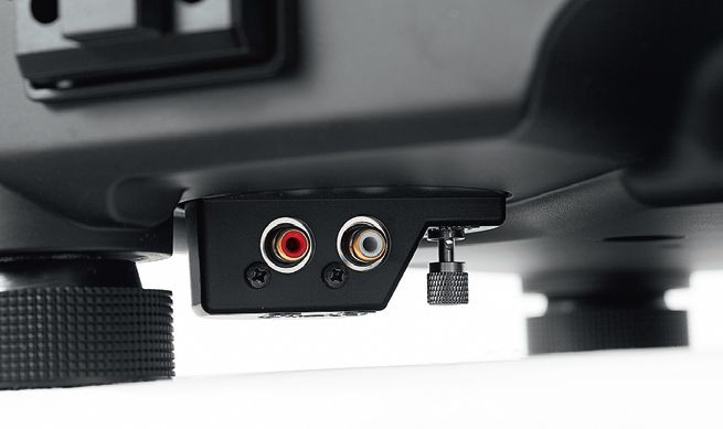 Na talerzu należy położyć gumową matę, w zestawie znajdziemy także osłonę przeciwkurzową z masywnymi zawiasami. Sygnał wyjściowy z wkładki jest wyprowadzony do gniazd RCA.