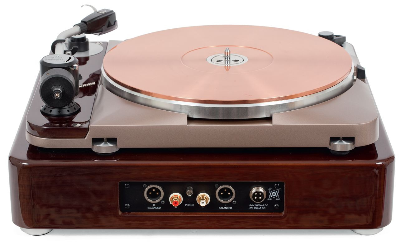 Thorens jednak na to się nie zdecydował, pewnie chcąc trzymać się jak najbliżej funkcjonalności oryginalnego TD 124. Na tylnej ściance gramofonu znajdują się dwa zestawy wyjść, RCA oraz XLR, jest też wielostykowe złącze, a w zestawie – zewnętrzny zasilacz.
