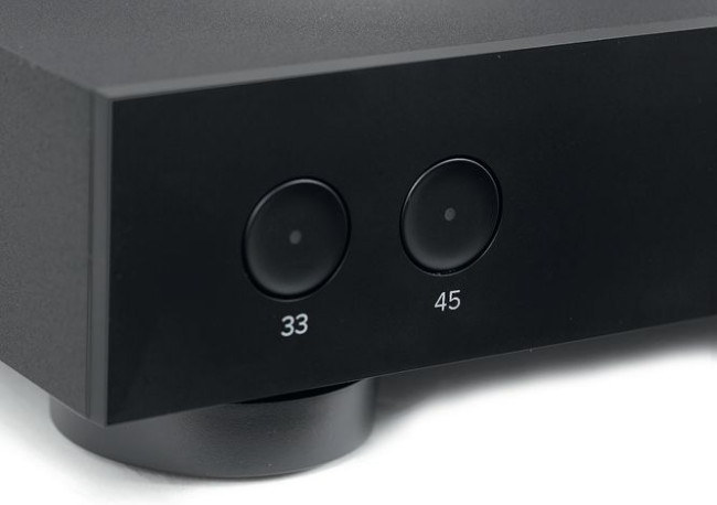 Za włączanie i wyłączanie napędu oraz wybór wariantu prędkości (33,3 lub 45 obr./min) odpowiadają dwa przyciski.