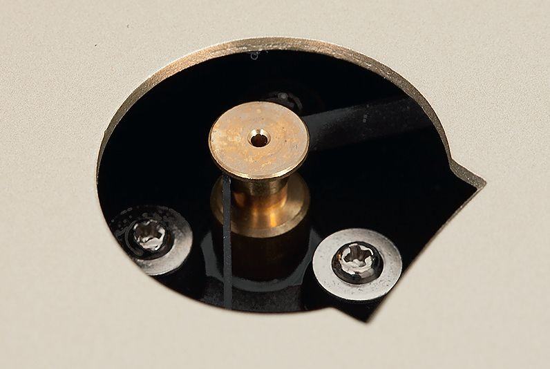 W obszernej podstawie kolumny ramienia mieści się sprężynowy układ anti-skatingu, do regulacji siły nacisku igły służy tradycyjna przeciwwaga.