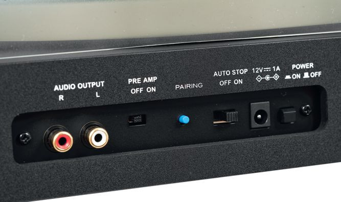 Na tylnej ściance jest więcej atrakcji niż zwykle, można nie tylko uruchomić i wyłączyć zintegrowany przedwzmacniacz korekcyjny, ale także sterować parowaniem gramofonu z odbiornikiem Bluetooth.