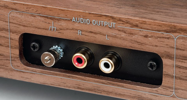 Parę gniazd RCA uzupełniono trzpieniem uziemiającym, bez żadnych elektronicznych dodatków.
