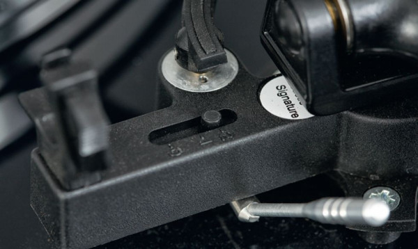 Kolce są dość wysokie, gdyż długa tuleja głównego łożyska została wypuszczona w dół mocniej, niżby na to wskazywały rozmiary gramofonu. Takie rozwiązanie gwarantuje wysoką sztywność i stabilność łożyska, do czego inżynierowie Acoustic Signature przykładają dużą wagę.