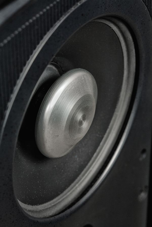 Obudowa Definitive Technology Mythos ST-L jest imponująco ciężka, biorąc pod uwagę jej bardzo umiarkowaną kubaturę, jest przy tym całkowicie bezpieczna pod względem stabilności dzięki dodaniu solidnego cokołu. Wykonana w całości z aluminium, jest nie tylko doskonale sztywna, ale też świetnie wytłumiona, o czym można się przekonać opukując ją w dowolnym miejscu - jest cicha jak kamień.