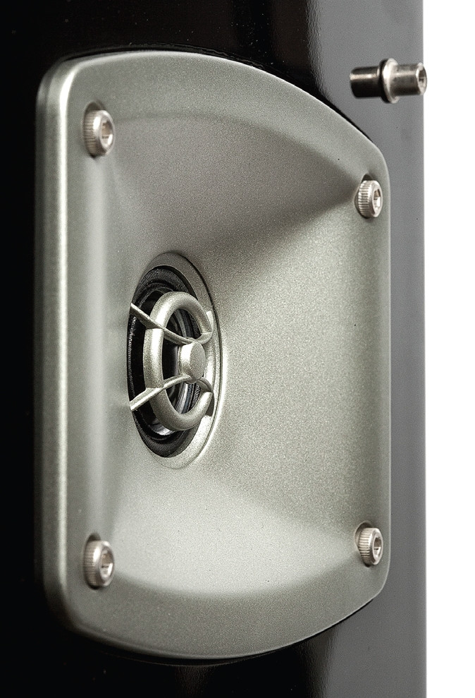 Również Yamaha zastosowała tubowy profil wokół aluminiowej wysokotonowej kopułki, którą dodatkowo zabezpieczono dyfuzorem. Tuba kojarzy się z wysoką efektywnością, ale powodem wprowadzania tego typu, dość płytkich ustrojów, do kolumn domowych, jest raczej regulowanie charakterystyk kierunkowych.