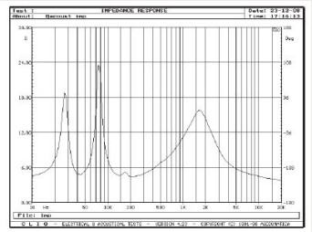 Wzmocniony zakres niskich częstotliwości i bardzo ładnie wyrównany średnio-wysokotonowy -tak ostatecznie można by jednym zdaniem opisać charakterystykę przetwarzania 1050i. Podobnie jak w przypadku Cantona GLE470, oś główną pomiaru określiliśmy na standardowej wysokości 90 cm, ustalonej jako przeciętna dla normalnych warunków odsłuchu; ponieważ głośnik wysokotonowy, będący centralnym punktem symetrycznego układu 1050i znajduje się nieco niżej, dlatego pod kątem