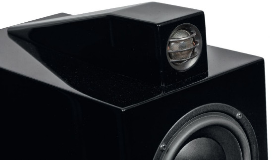 Cel takiego wyprowadzenia głośnika wysokotonowego poza obudowę jest dokładnie odwrotny od zamiaru, jaki przyświeca np. konstruktorom firmy Amphion, którzy głośnik wysokotonowy otaczają wyprofilowaniem, zawężającym charakterystyki kierunkowe (przynajmniej w pewnym zakresie częstotliwości). Tutaj rozpraszanie ma być najszersze, jak to tylko możliwe. Nadbudówka jest jednak w całości oryginalna, producent nie przygotował specjalnej formy dla komory wytłumiającej falę od tylnej strony kopułki, a więc jakiejś aluminiowej czy plastikowej "fajki", lecz utworzył ją najprawdopodobniej z takiego samego materiału jak główną część obudowy - z elementów z mdf-u, stąd taki właśnie kanciasty kształt. Nie wygląda to filigranowo, ale do wykonania obudowy nie można się przyczepić: wszystkie ścianki polakierowano na wysoki połysk.