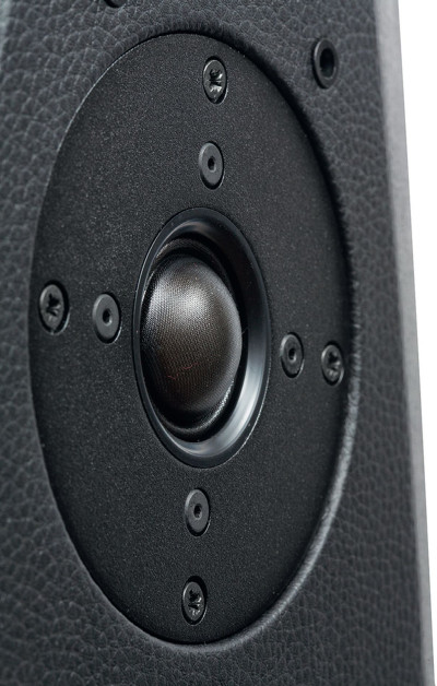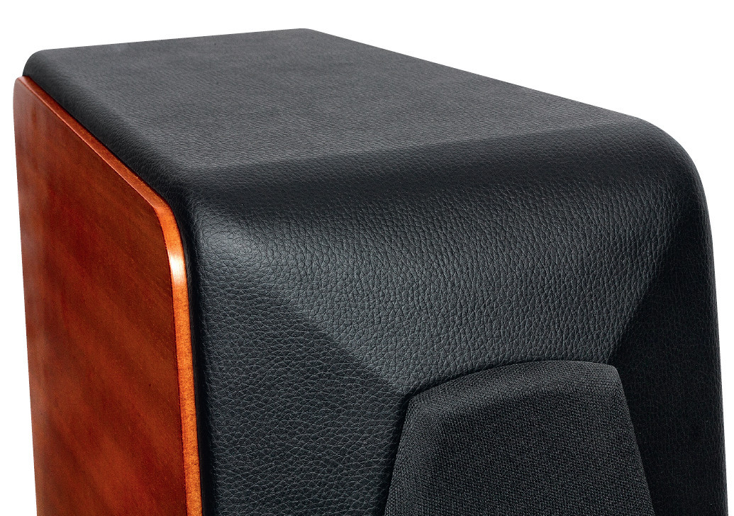 Front obudowy ma grubość aż 40 mm i jest obleczony skórą (może sztuczną), której producent wcale nie przypisuje żadnych specjalnych zalet akustycznych, ale montażową - skóra jest od razu dobrą uszczelką dla wszystkich głośników. Ścianki boczne wykończono naturalnym fornirem w dwóch wersjach - wiśnia i mahoń.