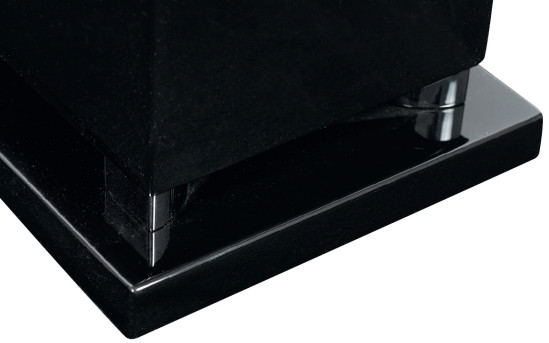 Prześwit między obudową a cokołem i tworzące go elementy dystansujące nie są czczą ozdobą - tędy wychodzi ciśnienie z jednego z dwóch tuneli bas-refleksu, zainstalowanego w dolnej ściance.