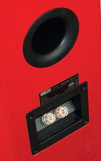 Otwór bas-refleks ma średnicę tylko 4,5 cm i 10-cm; tunel, wraz z niewielką objętością obudowy (ok. 15 litrów), układ bas-refl eks dostrojony jest dość wysoko (ok. 55 Hz).