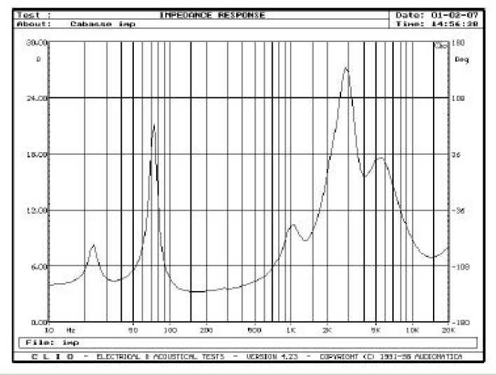 Wszystkie trzy francuskie kolumny popisały się bardzo wysoką efektywnością - wszystkie przekroczy ły pułap 90dB, a Cabasse i Focal osiągnęły 92dB. To naprawdę sporo, chociaż na podstawie lektury katalogów mogłoby się wydawać, że to wynik zupełnie oczywisty. Ale rezultaty te osiągnięto przy 4-omowych impedancjach, i sterowaniu kolumn napięciem 2,83V, ustalonym niegdyś dla dostarczenia mocy 1W, ale przy impedancji 8-omowej. Oznacza to, że tak zmierzona efektywność (co jest powszechną praktyką) jest jednak zawyżona. Producenci lubią też zawyżać samą impedancję, i Cabasse przedstawia swoją Javę jako znamionowo 8-omową. Trudno się z tym zgodzić, widząc 3-omowe minimum przy 150-200Hz (rys. 1). Mocne pofalowanie w zakresie średnio-wysokotonowym wskazuje na stosowanie filtrów wyższych rzędów (co z ustalaniem impedancji znamionowej nie ma już nic wspólnego).