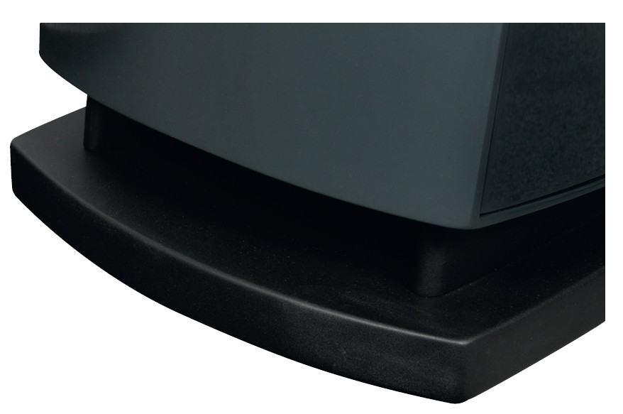 Wylot bas-refleksu (z komory głośnika niskotonowego, komora średniotonowego jest zamknięta) znajduje się na dole, z przodu; zręcznie wykorzystano odchylenie modułu basowego, klasyczny, okrągły tunel zainstalowano prostopadle do dolnej ścianki, a dalszą część kanału współtworzą wyprofilowane wewnątrz płozy, łączące cokół z obudową pod zaplanowanym kątem. Tak ułożony tunel ma odpowiednio duży przekrój i długość, stroi układ do optymalnej częstotliwości, bez wprowadzania turbulencji.