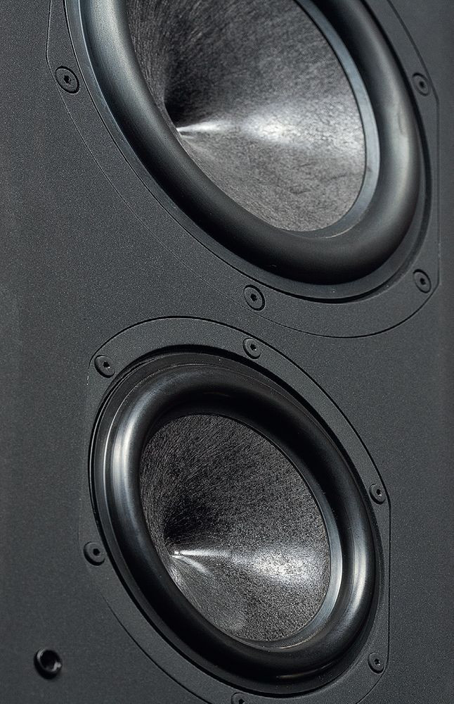 Jednocześnie konfiguracja głośników pozostaje w zgodzie z architekturą całej konstrukcji - wraz z odsunięciem głośnika niskotonowego od subniskotonowego "odwrócono" całą sekcję nisko-średnio-wysokotonową, a mimo to głośnik wysokotonowy znalazł się na optymalnej wysokości ok. 90 cm.