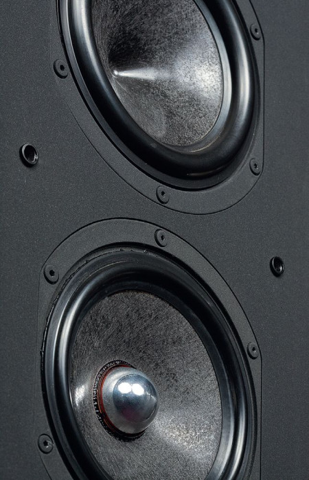 Głośnik niskotonowy (ten zainstalowany na górze) pracuje w obudowie zamkniętej, podobnie jak obydwa średniotonowe - każdy w swojej komorze (wyjątkowo dużej, jak na dość wysokie filtrowanie).
