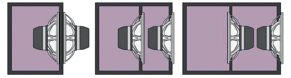 O marginalnych różnicach między tymi opcjami - na końcu. Jaka jest jednak zasadnicza zaleta tego układu? W pierwszym wrażeniu może się wydawać, że taka instalacja sumuje ciśnienie wytwarzane przez obydwa głośniki - jednak wcale tak nie jest; ciśnienie po obydwu stronach układu jest zdeterminowane przez częstotliwość i amplitudę pracy membrany pojedynczego głośnika.