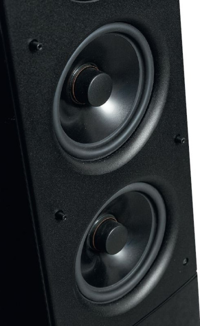 Stąd taka koncepcja wydaje się mieć najwięcej sensu przy dużej różnicy wielkości między głośnikiem niskotonowym a średniotonowym, a tutaj jest ona niewielka (niskotonowe 18-cm, średniotonowe 15-cm), ale wciąż ma swoje zalety. Jeden mały głośnik średniotonowy nie wystarczyłby, aby pracować w kolumnie dużej mocy od niskiej częstotliwości podziału; z kolei zastosowanie dużego byłoby trochę wbrew owym założeniom...