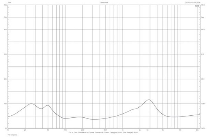 Nie ukrywa, że impedancja znamionowa wynosi 4 Ω, w dodatku charakterystyka impedancji nie powinna budzić niepokoju właścicieli przynajmniej "normalnych" wzmacniaczy, Avantera III nie wygląda w tym ujęciu na trudne obciążenie, minima trzymają się na poziomie ok. 3,5 Ω, a w całym pasmie zmienność jest niewielka.