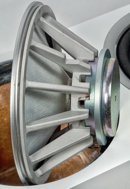 W głośniku średniotonowym "wymieniono" nie tylko membrany, a w zasadzie wszystko: jego nowy kosz jest odlewany z aluminium, ma więcej ramion, lecz wciąż aerodynamiczny profi l i wyjątkowej (technicznej) urody magnes neodymowy. Prawdopodobnie wykorzystano gotowy głośnik z serii 800 D3, ale takie "zapożyczenie" oznaczałoby świetny awans. 702 S2 nie tylko są elektrycznie trójdrożne, ale w każdej sekcji wykorzystują wysoce wyspecjalizowane, a nie tylko "adaptowane" przetworniki.
