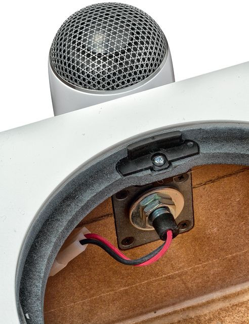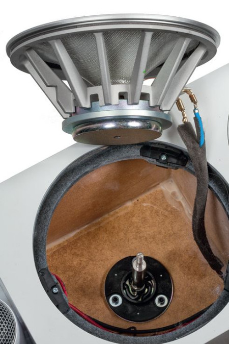 Głośnik średniotonowy jest mocowany elastycznie, odsprzęgnięty od przedniej ścianki, co nie jest zupełną nowością (było stosowane już w modelu CM10 S2), jednak zmieniono szczegóły tego mocowania – zamiast długim prętem, wychodzącym z układu magnetycznego, do gniazda w tylnej ściance obudowy – teraz krótkim prętem zamocowanym do specjalnego resora, przykręconego do tylnej ścianki komory średniotonowego, wchodzącym w środek głośnika. W celu pokazania tego na zdjęciu, z komory wyjęto materiał tłumiący.