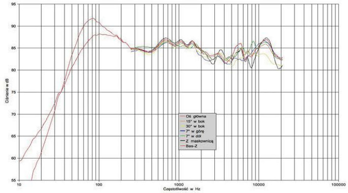 Charakterystyka przetwarzania daje lekką przewagę zakresowi nisko-średniotonowemu nad wysokotonowym, co jest trochę zaskakujące w kontekście relacjonowanego brzmienia, któremu wcale nie brakowało blasku. W sumie charakterystyka bez problemu utrzymuje się w ścieżce +/- 3 dB (a nawet +/- 2,5 dB) w pasmie od 200 Hz, co nie udało się kilku innym konstrukcjom tego testu. Charakterystyki zmierzone pod różnymi kątami leżą bardzo blisko siebie, nawet zwykle wyraźnie odstająca z osi 30° trzyma się niedaleko pozostałych aż do 20 kHz, więc wysokie tony są bardzo dobrze rozpraszane.