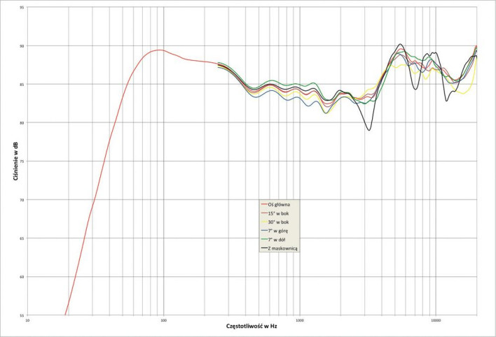 Można zakładać, że to efekt wywołany celowo, bowiem w pobliżu częstotliwości podziału łatwo jest korygować charakterystykę obydwu głośników (w tym przypadku - wysokotonowego); z kolei dołek przy 14 kHz jest już nieusuwalny, w sposób typowy dla metalowych kopułek poprzedza ich rezonans (widoczny dokładnie przy 20 kHz).