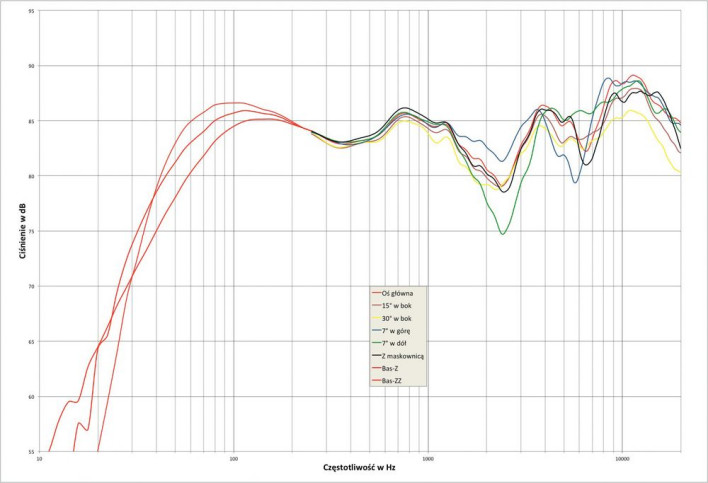Zwykle nasza głowa jest nieco wyżej, więc wszystko się dobrze składa. Rozpraszanie w płaszczyźnie poziomej jest bardzo dobre, a lekki "zapas" (wyeksponowanie) wysokich tonów pozwala nie dbać o precyzyjne "wycelowanie" (skręcenie) głośników w stronę miejsca odsłuchowego. Również maskownica nie czyni szkody, tylko śladowo zwiększając osłabienie przy 6,5 kHz – może bez obaw pozostać założona.