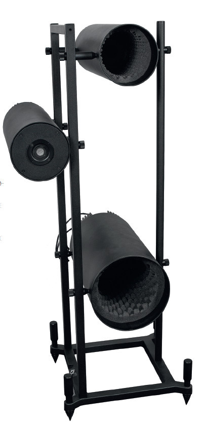 W tej sytuacji przygotowano stelaż, podobny jak w konstrukcjach Uno i Duo, tyle że nie obejmuje on skrzyni, lecz służy do niezależnego mocowania poszczególnych tub, a dokładniej - rur, w których zainstalowane są przetworniki. Same tuby są wkręcane w specjalne, nagwintowane pierścienie, przymocowane z kolei do płyt, w których osadzono głośniki - profile tub zaczynają się bezpośrednio przy membranach przetworników.