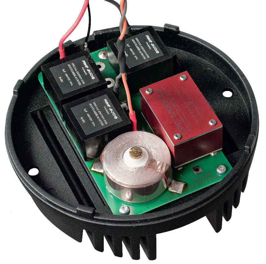 Głośnik wysokotonowy, chociaż najmniejszy, jest równie imponujący jak pozostałe - również jego magnes ma średnicę 13,5 cm, co dla tweetera jest "wynikiem" niespotykanym. 25-mm membrana jest wykonana z mylaru. Tuba ma wylot o średnicy 18 cm i długość 8,5 cm. Dodane elektryczne filtrowanie górnoprzepustowe jest i tutaj pierwszego rzędu, chociaż tworzy go cała bateria kondensatorów. Zastosowano bowiem układ nazwany CPC - od Capacitor Polarisation Circuit.