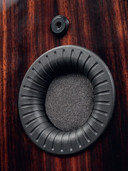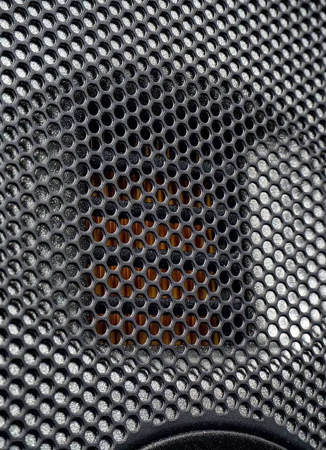Membrana przetwornika wysokotonowego znajduje się za podwójną (a nawet potrójną) gardą - tuż przed nią poprzeczki tworzące szczeliny (typowe dla przetworników AMT), a na wierzchu metalowa siatka. Do tego można jeszcze założyć maskownicę przykrywającą cały front...