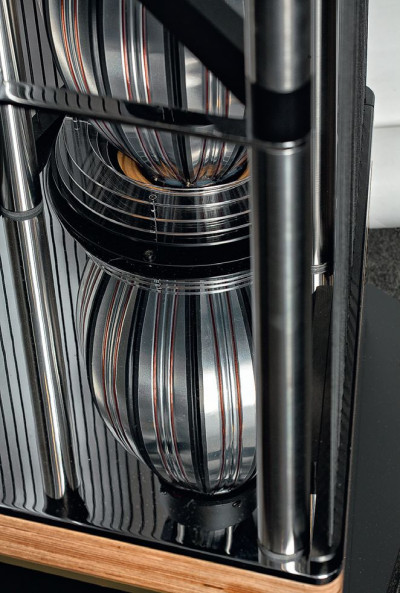 Trzy górne cebule wiszą jedna pod drugą, nie są od dołu niczym podparte; w tej sekcji układy magnetyczne poszczególnych przetworników znajdują się na górze każdego z nich.