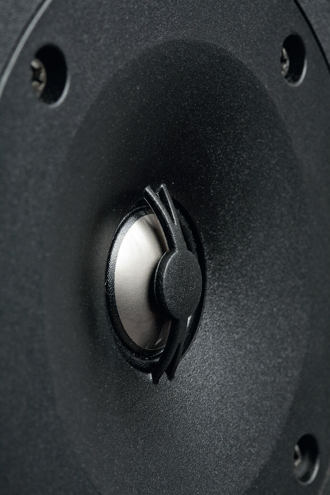 Tytanowa kopułka z płytkim tubowym wyprofilowaniem... też w firmowym stylu, ale w oryginalnych L100 wysokotonowy był zupełnie innego typu - ze stożkową, celulozową membraną.