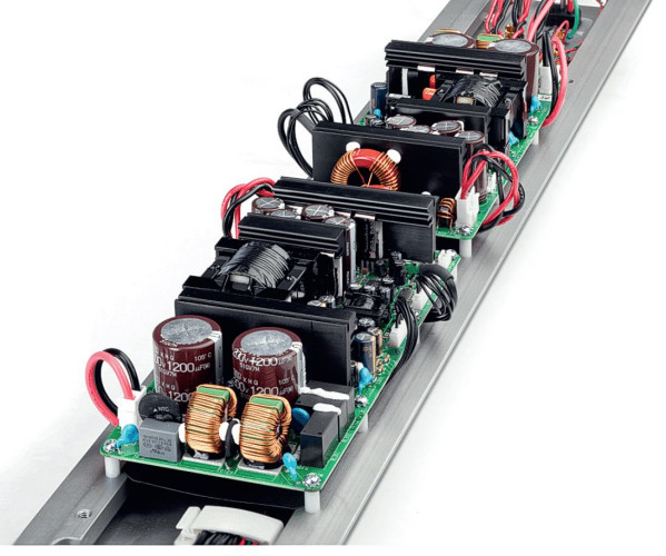 W tym przypadku nie trzeba było tego robić, głośniki średniotonowy i wysokotonowy są podłączone przez filtry bierne, ale bez tłumików, ewentualnie z niewielkim ich udziałem, dopasowującym poziom tych głośników do nich wzajemnie, a nie do sekcji niskotonowej. Role się odwróciły - to wysterowanie wewnętrznych wzmacniaczy sekcji niskotonowej jest wyregulowane w taki sposób, aby poziom ciśnienia akustycznego z tej sekcji pasował do "naturalnego" poziomu sekcji średnio-wysokotonowej.