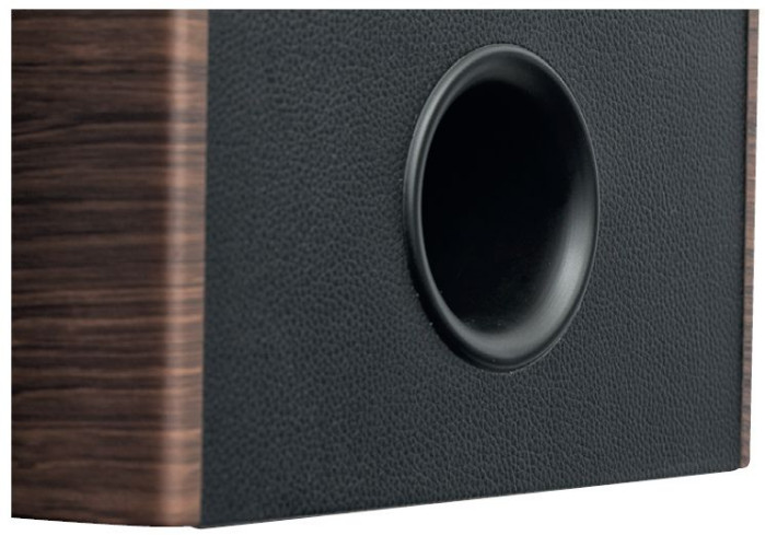 W obudowach monitorów Focal Aria 906 połączono okleinę drewnopodobną (dobrej jakości, ale nie naturalną), skórę "ekologiczną" (czyli sztuczną), szkło, dołożono tekstylną maskownicę i garść jeszcze innych materiałów w samych przetwornikach i dookoła nich - sam Flax wygląda bardzo oryginalnie, a jest ozdobiony metalowym pierścieniem, błyszczy też kopułka wysokotonowa, wokół której widać elipsę płyty mocującej... a pod nisko- średniotonowym było jeszcze dość miejsca na bas-refleks.