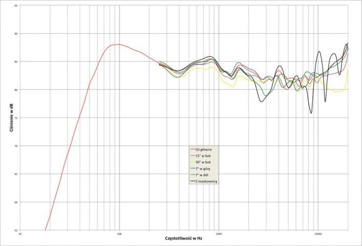 Większym problemem jest "zachowanie" maskownicy – powoduje ona wyraźne (i największe w tym teście) nierównomierności, robiąc z zakresu wysokotonowego "grzebień"; to oczywiście nie wpływ samej tkaniny, ale odstającej ramki, od której fale się odbijają.