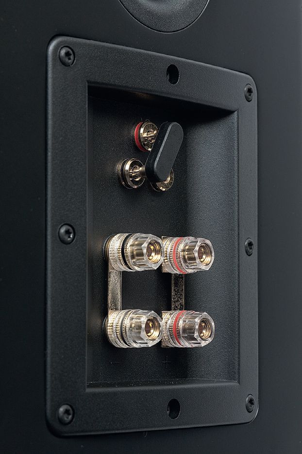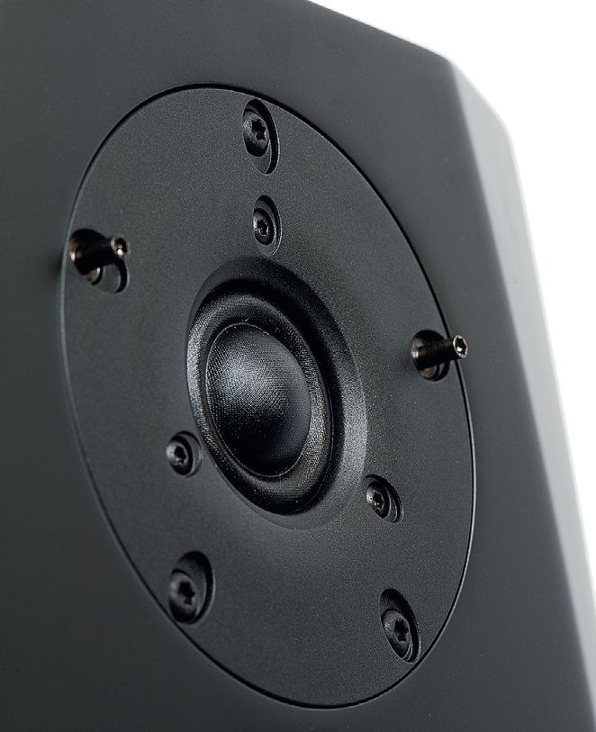 Obudowa ma kilka "smaczków", pełniących określone zadania akustyczne - pochylenie frontu koryguje pozycję przetworników, a ukośne sfazowania redukują odbicia fal