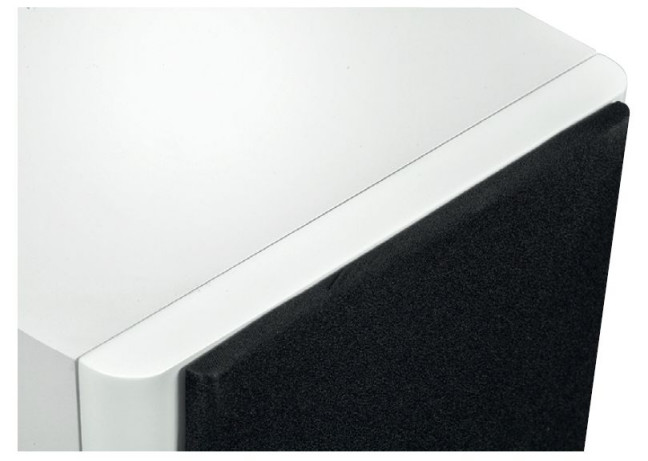 Nie ma tutaj naturalnego forniru ani tym bardziej lakierowania na wysoki połysk, chociaż... front jednak polakierowano, pozostała część obudowy została oklejona matową folią. Kosze wszystkich głośników są osłonięte pierścieniami, a maskownica mocowana na magnesy.