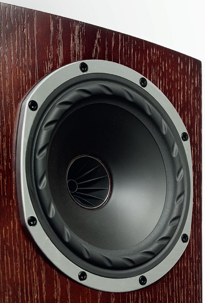 W podstawkowych F500 i podłogowych Fyne Audio F501 zastosowano układ koncentryczny o średnicy 18 cm (producent podaje 15 cm, ale to brytyjskim zwyczajem średnica samej membrany z zawieszeniem, a nie całego kosza). W centralnym jest jeszcze mniejszy – 13-cm (ale towarzyszą mu dwa tej samej średnicy niskotonowe – nieźle!), wreszcie w F502 (i F502 SP) zarówno IsoFlare, jak i głośnik niskotonowy mają średnicę 20 cm.
