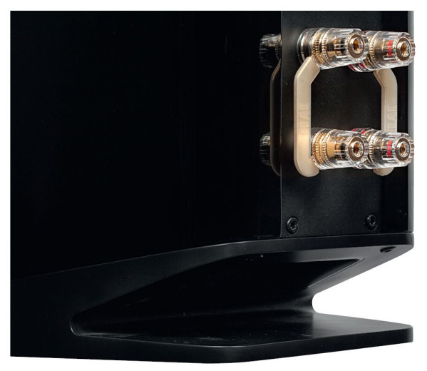 Masywna, egzotycznie wyprofilowana stopa daje obudowie znakomite podparcie, jednocześnie tworzy ujście dla ciśnienia z bas-refleksu; pozornie do tyłu i na boki, ale w praktyce fala niskich częstotliwości rozejdzie się swobodnie na wszystkie strony.