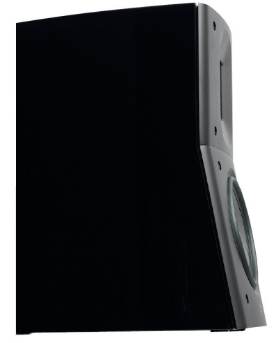 Forma pozostałej części bryły służy już ograniczeniu fal stojących wewnątrz, a w tylny "zwornik" efektownie wkomponowano wylot bas-refleks, gniazdo przyłączeniowe i element znajdujący się pomiędzy nimi... którego przeznaczenia nie ustaliliśmy.
