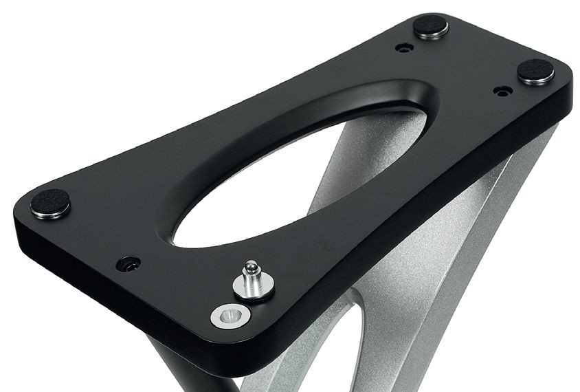 Tym bardziej że mamy do czynienia z koncepcją oryginalną, chociaż kontrowersyjną - nie jest to "sztywna" konstrukcja, głośnik na niej postawiony "pływa" na czterech kulkach leżących w zagłębieniach, połączonych z tulejami i talerzykami, na których ostatecznie opiera się dolna ścianka. Podparcie jest więc punktowe, ale nie sztywne, cała podstawka też jest chybotliwa.