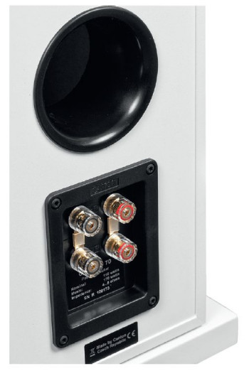 Teraz takie rozwiązanie pozostało tylko w serii Chrono SL, a w serii Chrono ulokowano bas-refleks z tyłu, ponad gniazdem przyłączeniowym. Niektórzy będą się tego obawiać, ale wcale nie dlatego rekomenduję odsunięcie Canton Chrono 70 od ściany na przynajmniej pół metra, ale dlatego, że ich mocny bas byłby nadmierny przy ustawieniu kolumn pod ścianą również wtedy, gdyby tunel znajdował się na dole, a nawet z przodu.