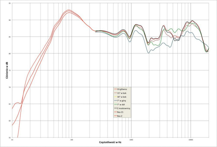 Jednak tym razem przyjrzeliśmy się sprawie dokładniej i ustaliliśmy, że lepiej wygląda rodzina charakterystyk pochodnych od osi głównej ustalonej na wysokości 90 cm – więc taką przygotowaliśmy. Dlatego nie pojawia się już głęboka (chociaż niegroźna, bo wąskopasmowa) zapadłość przy 4,5 kHz pod kątem +7º, lecz znacznie płytsze osłabienie przy 5 kHz, należące wcześniej do charakterystyki z osi głównej.
